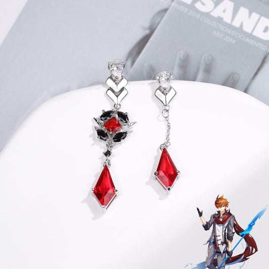 Childe Tartaglia inspirierte asymmetrisch silberne Ohrringe Genshin Impact
