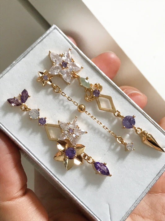 Keqing inspirierte asymmetrisch goldene Ohrringe Genshin Impact