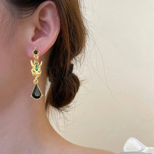 Xiao inspirierte asymmetrisch goldene Ohrringe Genshin Impact