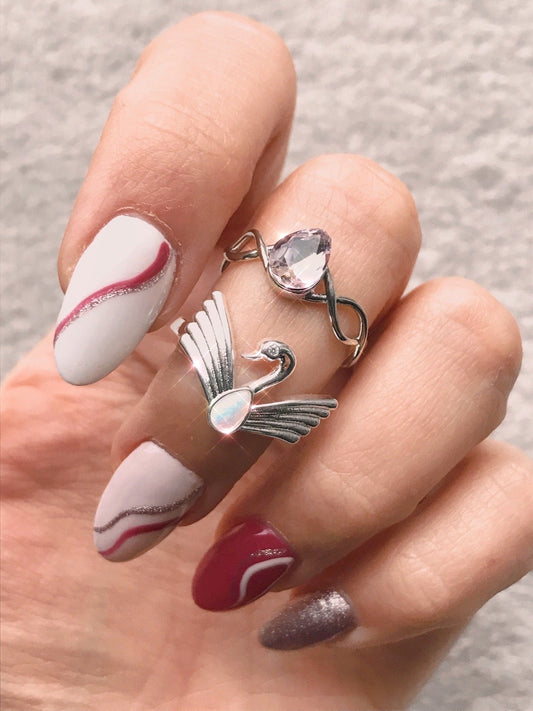 Schwanensee Odette Schwan inspirierter Ring mit Kunst Opal weiß