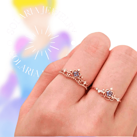 Cinderella inspiriertes Ring-Set mit blauem Kristall Dekor