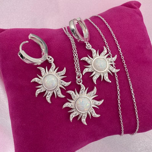 Rapunzel Prinzessin inspirierte Sonne Halskette Ohrringe Set mit künstlichem Opal