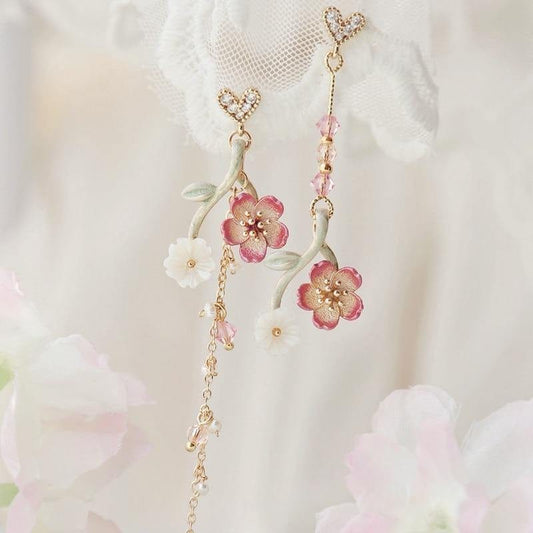 Asymmetrische Kirschblüten Ohrringe in Pastell
