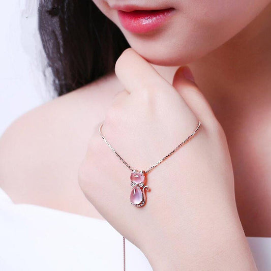 Rosenquarz Halskette in Katzen-Form